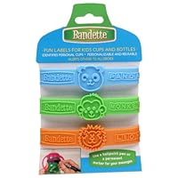Personalize your kid's cups while alerting other to allergies and preferences and avoiding the dreaded spread of germs with Bandette cup labeling system for little kids! Simply write their name, medications for allergies on the unique "name plate" on the backside of the band, which can be easily erased. When your child is out and about, at day care, at camp, at school, on the playing field, or at home, he or she will easily know which cup or bottle is theirs buy using the Bandette cup labeling system - no reading required. An essential for parties and play dates. Microwave and dishwasher safe. GARDEN BUGS: Ladybug, Honey Bee & Butterfly. ZOO: Panda, Lion & Monkey.
