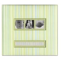 This beautiful, photo safe, top loading, post bound albums come with 10 pages, which will accommodate 20 layouts. You may add additional pages. Frame A Name Baby Boy Stripe- Album has an exterior pattern of various small width stripes in shades of Aqua, Apple, and White with a vinyl slip cover. Cover has 2 "frame" areas, 1 is approximately 7-3/4-Inch by 3-Inch with divisions for 3 photos, and the other is approximately 7-3/4-Inch by-1-3/4-Inch for the baby's name(alphabet stickers included). Album is 12-Inch by 12-Inch.