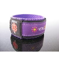 CHILDREN'S ID BRACELET - These children's medical ID bracelets are strongly constructed from webbing and re-closable hook & loop, available purple with flowers and have a medical symbol plus the words "Vital ID Inside" on the exterior. Fits wrist size 5-6 inch wrist. Medical ID Bracelet!