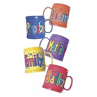 Make your child feel extra special with a personalized mug! These mugs are dishwasher-safe and make meal time fun with the bright colors. The mugs are made of soft PVC. Colors may vary.