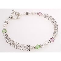 This exquisite single strand bracelet can be customized with the names of two children and their corresponding birthstones. It will be a wonderful reminder of what's really important in life, and will give you one more (well-earned) excuse to brag about the people that mean the most to you. I use only the finest quality materials, including Austrian Swarovski crystal birthstones and crystal pearls, genuine Sterling Silver clasps and spacer beads. Get this wonderful keepsake for a special woman in your life!