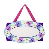 Stylized butterflies, with floral accents, flutter around the space reserved for the name of someone special. With its letter stickers included, it's easy to personalize this colorful wooden hanging door plaque. A color-coordinated hanging ribbon is included for the perfect finishing touch.