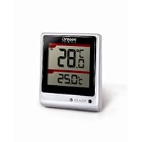 Stay up to date on the weather with this wireless desktop thermometer from Oregon scientific. The unit monitors the indoor and outdoor temperatures from up to three remote locations and warns you when temperatures drops low enough for icy streets and sidewalks. The included remote installs up to 100 feet away to transmit accurate temperature data to the main console inside the home or office. Outdoor temperature readings are displayed in large LCD digits for easy reading at a glance from across the room.Resting on a desktop on its stand or mounted to the refrigerator with the integrated magnet, the thermometer\'s LED light blinks green when sub-freezing temperatures are reached in the driveway, the greenhouse, the basement or wherever cold-sensitive items might be stored.