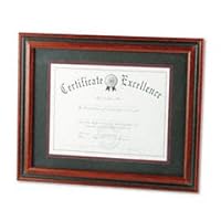 Two toned rosewood/black wood frame handsomely displays your material. The wide profile frame accents most home décor finishes. It has an easel back for tabletop, and also hangs vertically or horizontally. Global Product Type: Frames-Certificate/Document; Frame Type: Certificate; Document; Frame Material: Wood; Frame Color: Rosewood/Black.