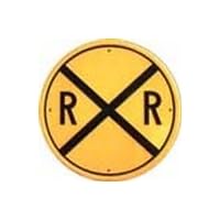 This is a metal (made of aluminum) sign that is 12 inches in diameter. Replica looking Rail Road Crossing Sign