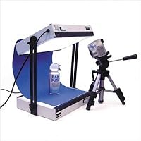 I ordered this internet photo studio because as a graphic artist I need to take pictures of small products and items for clients and this product seemed like a nice solution for softly lighting above and/or below. First, the lights are not very bright. Second, the plastic knobs that lock the upper and lower light assemblies in place are of poor quality and don't lock tightly enough. And finally, more of a personal annoyance, but the power cords rather than being placed on the backside of both light assemblies, one is on the front of the unit meaning you have to work around a power cord while you are shooting. I end u having to tape it to the side of the one light so it stays out of the way.