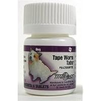 100% effective tape worm control. Now available without a prescription. Dosage:~~ 5 lbs & under: 1/2 tablet ~~ 5-10 lbs: 1 tablet ~~ 11-15 lbs: 1 1/2 tablets ~~ 16-30 lbs: 2 tablets~~ 31-45 lbs: 3 tablets~~ 46-60 lbs: 4 tablets~~ over 60 lbs: 5 tablets. Tape Worm Tabs will remove the common tapeworms, Dipylidium canium and Taenia pisiformis from dogs and puppies. FASTING IS NEITHER NECESSARY NOR RECOMMENDED. Full prescribed dose of tablets must be eaten to remove all tape worms. Dosage may be repeated after 30 days.