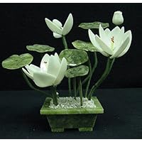 Click Here to see more reviews about: White Jade Lotus Bonsai Flowers Bouquet Asian Art Home Decor